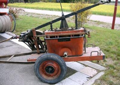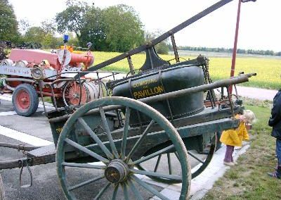 La même année, la commune a fait l’acquisition d’une première pompe à bras ; même si elle était uniquement refoulante (il fallait l’approvisionner par les mêmes chaînes à seaux) elle présentait un progrès énorme puisque la pression à la lance, obtenue par l’action de vigoureux pompeurs permettait d’attaquer le feu à distance.